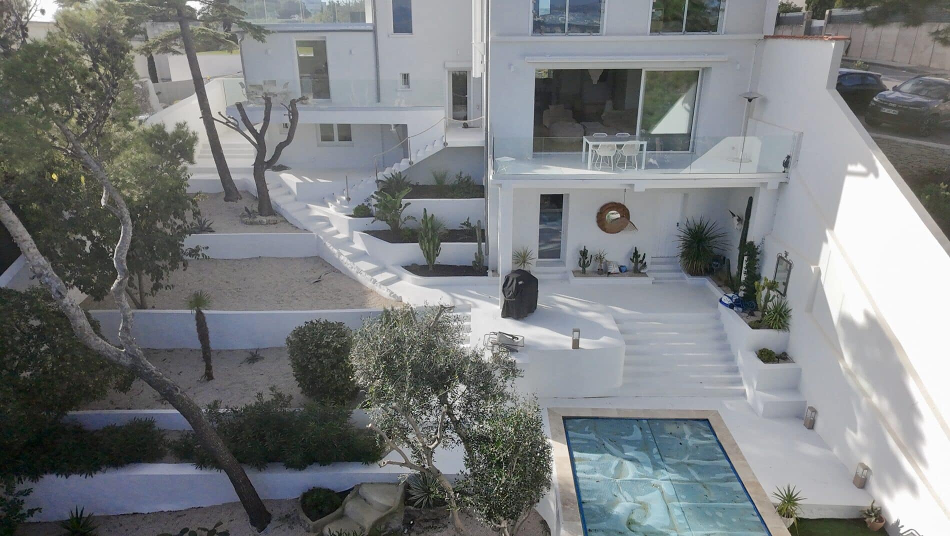 Particularité du spotMaison contemporaine nichée sur un rocher, sans aucun vis-à-vis, offrant une vue panoramique dégagée depuis toutes les pièces. L’horizon est large, mêlant végétation méditerranéenne, ville et ciel, ce qui apporte une respiration permanente à l’image. Le jardin et les extérieurs se développent en restanques avec un fort dénivelé, créant des lignes graphiques très cinégéniques : escaliers blancs, murs minéraux, terrasses suspendues. À l’intérieur, les volumes du salon sont généreux, baignés d’une lumière naturelle franche et constante grâce aux grandes baies vitrées. Les circulations sont fluides, avec de véritables continuités intérieur / extérieur. La cuisine et les espaces de vie, ouverts et lisibles, renforcent cette sensation de maison contemporaine . La décoration est neutre, épurée et élégante, dans des tons clairs et naturels. Un spot fort, lumineux et graphique, rare par son implantation, son dénivelé et sa vue omniprésente, qui fonctionne immédiatement à l’image et offre une grande liberté de mise en scène pour le cinéma et la publicité.